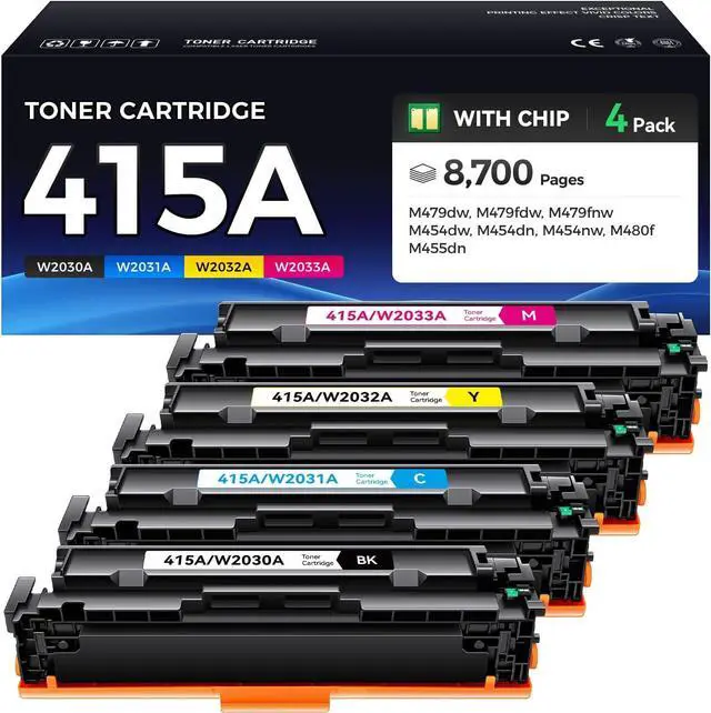 Package Content: 415 A High Capacity Toner Cartridges 4 Combo Pack (1 × W2030A Black, 1 × W2031A Cyan, 1 × W2033A Magenta, 1 × W2032A Yellow) to provide clear, natural, vibrant prints.