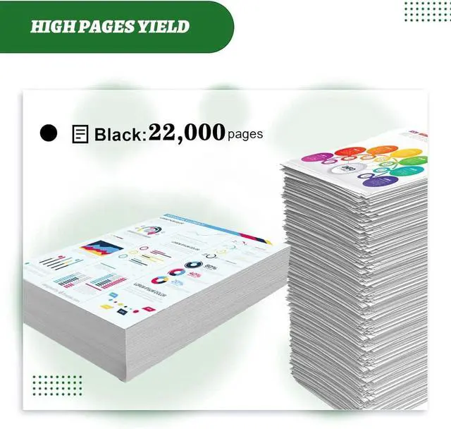 Print more and Cost less: Our Toner Cartridge boast extended lifespans, 22,000 pages per Black cartridge (5% coverage on A4 paper), which reduces the frequency of cartridge replacements