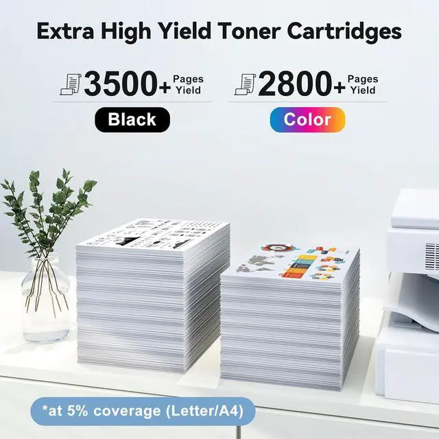 High Page Yield: Up to 3,500 pages per black 304A toner CC530AD, 2,800 pages for Color Toner Cartridges CC531A CC532A CC533A (Letter/A4, at 5% coverage )