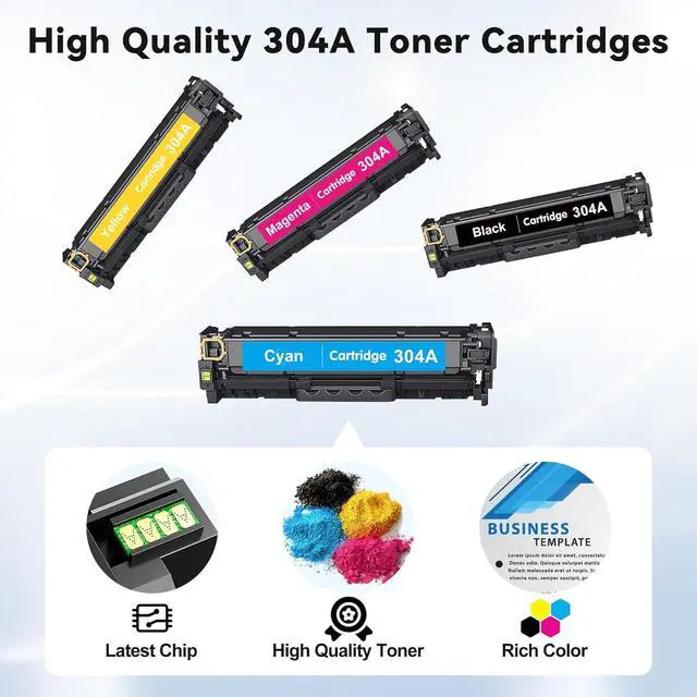 YQSLPBM 's 304 A toner cartridges 4 pack (with chip) is suitable for high-volume office printing, professional documents, presentations and marketing materials