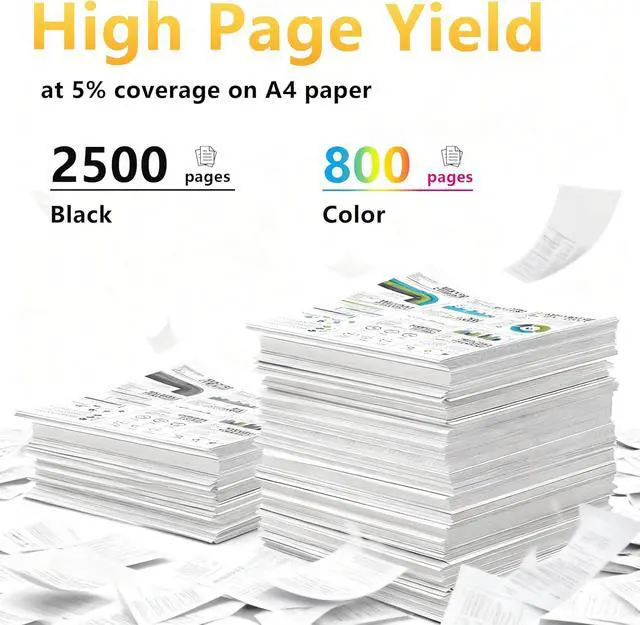Highest Page YieldUp to 2,500 pages per black ink cartridge and 800 pages per color ink cartridge (5% coverage) A4 paper.