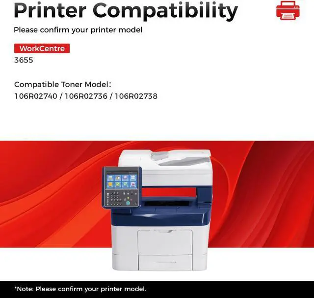 Compatible Printer: Xerox WorkCentre 3655; Compatible Toner Model106R02740106R02736,106R02738