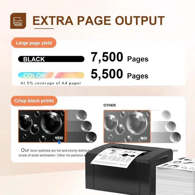 High Page Output: W2300X black toner cartridge can print 7,500 pages, W2301X cyan/ W2303X magenta/ W2302X yellow can print 5,500 pages (5% coverage, Letter/A4)