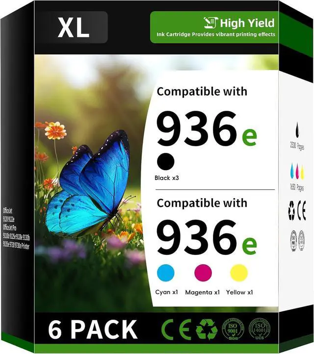Content Packing: 936e 6 Pack High Yield Color Ink Cartridge Replacement Compatible with HP936e HP936 936 e Ink Cartridge Combo Pack ( 3 x Black 936e ink,1 x Cyan 936e ink, 1 x Yellow 936e ink, 1 x Magenta 936e ink)
