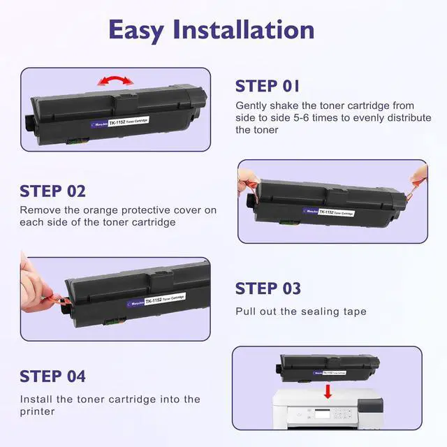Product Advantages: Every Replacement for Kyocera TK1152 TK-1152 1T02RV0US0 toner cartridges is rigorously tested for ensure its quality and perfect printer compatibility. Plus, our tough packaging ensures safe deliveryno damage, no hassle