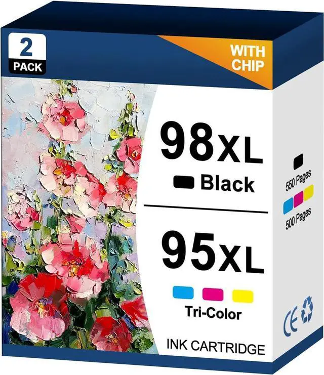 Package Content: 2 Pack 95 98 95xl 98xl Ink Cartridges,Black, Tri-Color