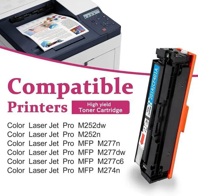 Replacement for included: 1 Pack High Yield 201A CF401A Cyan Toner Cartridge.