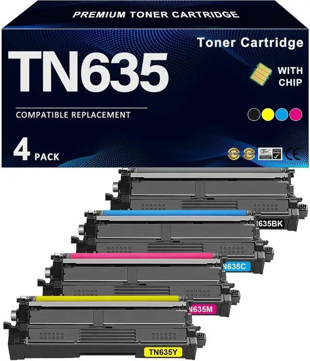 What's in the Box: 4 packs of TN635 Toner Cartridge Set; 1 x TN635 Black, 1 x TN635 Cyan, 1 x TN635 Yellow, 1 x TN635 Magenta