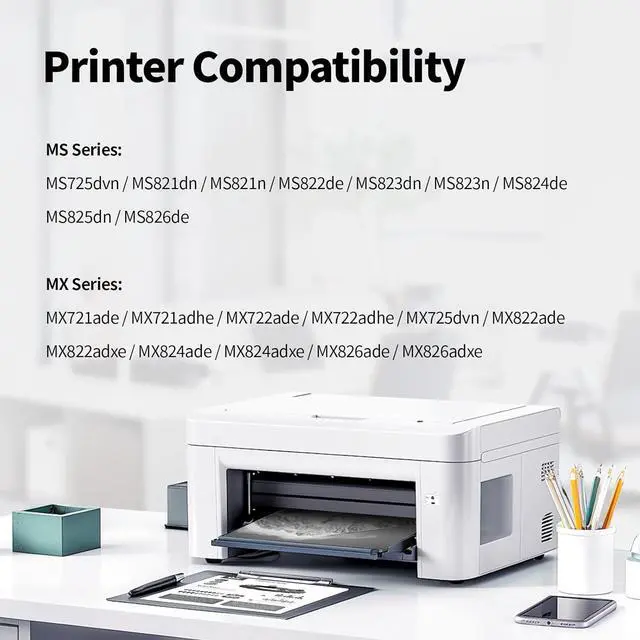 Printer Compatibility: Lexmark MS725dvn MS821dn MS821n MS822de MS823dn MS823n MS824de MS825dn MS826de MX721ade MX721adhe MX722ade MX722adhe MX725dvn MX822ade MX822adxe MX824ade MX824adxe MX826ade MX826adxe