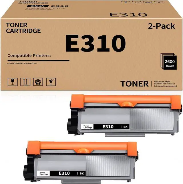 Package Contents: 2 Pack High Yield E310 Black Toner Cartridge Compatible Replacement for Dell E310 P7RMX PVTHG 593-BBKD