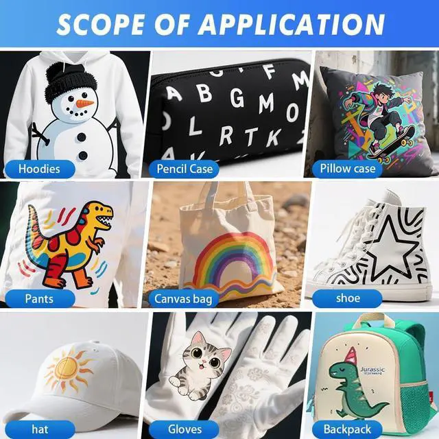 Material Compatibility: Suitable for cotton, polyester, spandex, acrylic, blended, silk, nylon and other fabrics, no need to pre-treat to realize high quality heat transfer printing.
