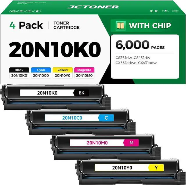 Item Name: JCTONER Compatible Replacement for 20N10K0 20N10M0 20N10Y0 20N10C0 Toner Cartridge Set 4-Color with chip.