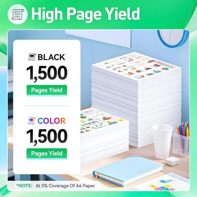 High-Yield: up to 1,500 pages per 20N10K0 Black and 1,500 pages per 20N10M0 20N10Y0 20N10C0 Color Toner Cartridge (Total 6,000 pages, 5% coverage).