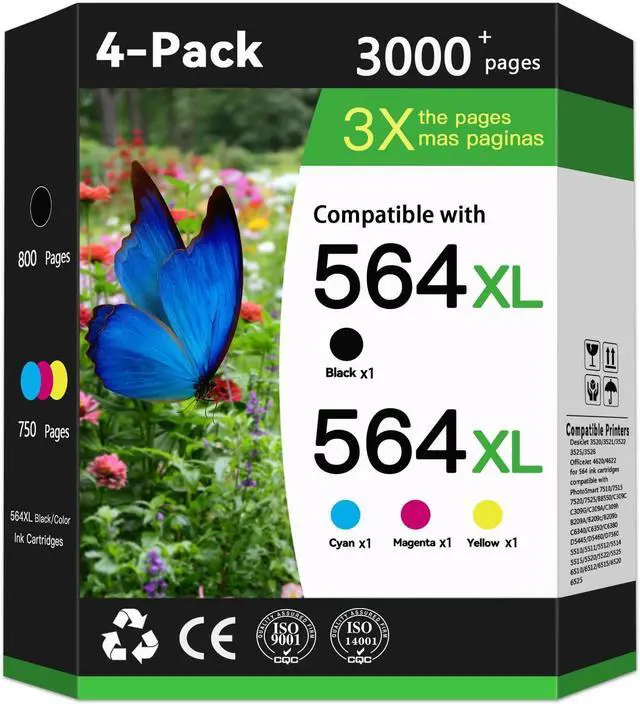 Package Content: 4 Pack High Yield Ink Replacement for HP 564XL Ink Cartridge