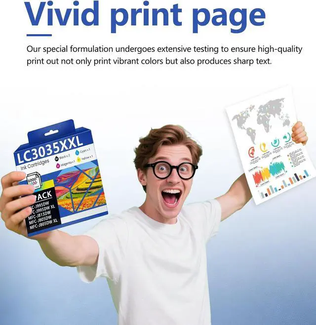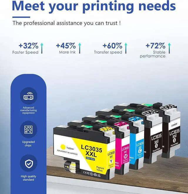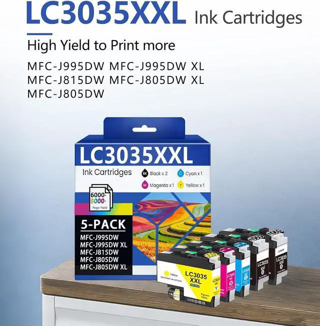 High-Capacity Ink Cartridge Pack: Contains 5 LC3035XXL cartridges (2Baclk, 1 Cyan, 1 Magenta, 1 Yellow). Individually sealed packaging prevents ink leakage