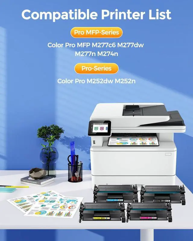 Compatibility: 201X CF400X toner cartridge Compatible with HP Color Laser Jet Pro M252dw M252n, Color Laser Jet Pro MFP M277dw M277n M277c6, Color Laser Jet Pro MFP M274n Printer.