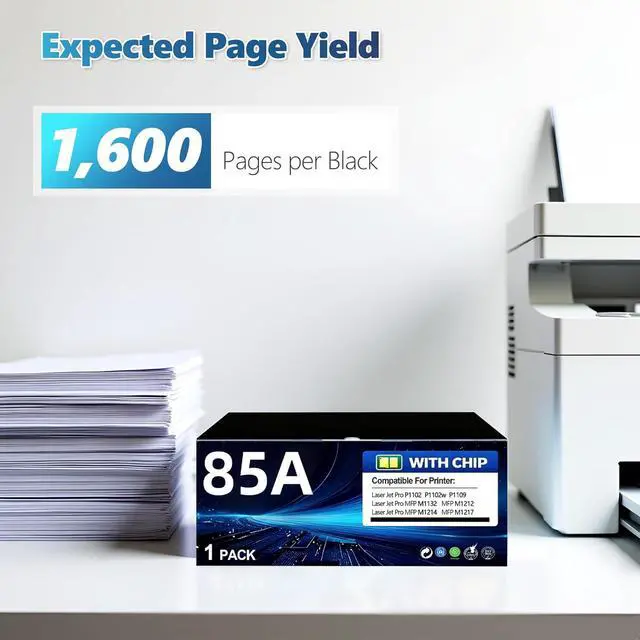 Pre-Installed Chip: Our toner cartridges come with pre-installed chips no need to transfer chips from original 85a ce285a cartridges. Simply plug and print directly, saving time and avoiding chip damage