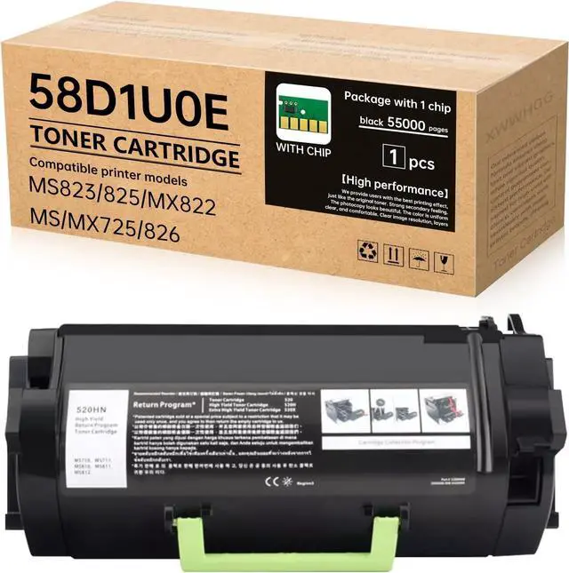 High-Quality Toner: Each 58D1U0E High Yield Cartridge undergoes rigorous testing for performance and printer compatibility. Pre-installed smart chip enables plug-and-play operation