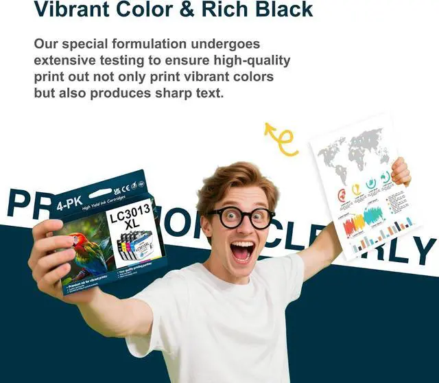 Package Contents: total 4 pack LC3013XL ink cartridges(BK/C/M/Y)