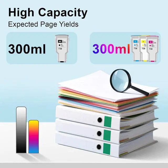 Package Contains: 4 packs of 738 738XL ink with chip replacement for 498N8A 676M6A 676M7A 676M8A ink cartridge. Plug-and-play without manual reset or chip debugging, eliminating compatibility errors