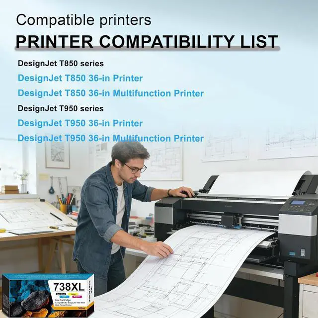 Compatible Printer: Replacement for HP DesignJet T850 and DesignJet T950 Wide Format Printer Plotter