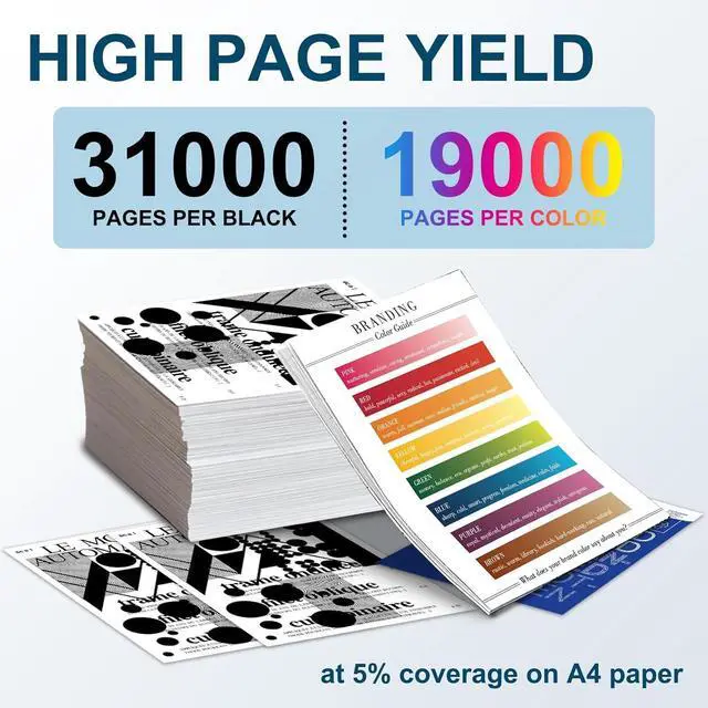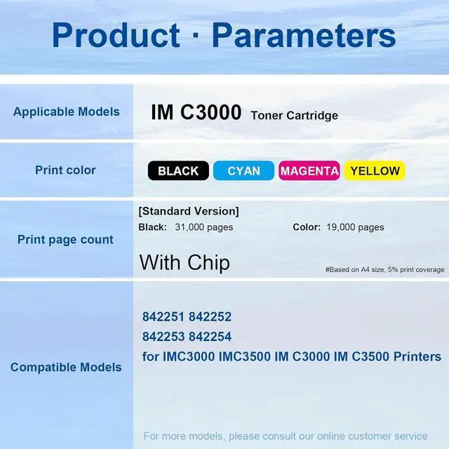 High Page Yield 31,000 Pages for IM C3000 Black Toner Cartridges, 19,000 Pages for IM C3000 Color Toner Cartridges (Letter A4,at 5% Coverage)