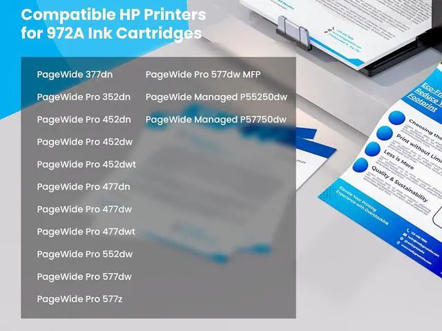 Printer Compatibility: HP PageWide 352dw, 377dn, 377dw, P55250dw, P57750dw, 352dn, 452dn, 452dw, 452dwt, 477dn, 477dw, 477dwt, 552dw, 577dw, 577dw MFP, 577z