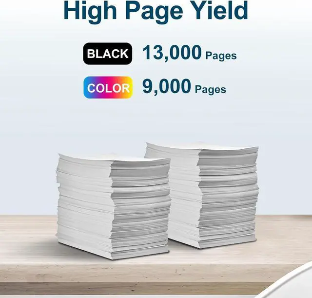 High Page Yield Up to 13,000 pages per Black at 5% coverage of A4 paper, Up to 9,000 pages per Color at 5% coverage of A4 paper
