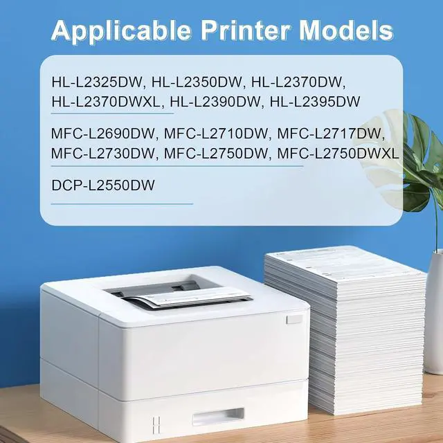 Compatible for Brother Printer: HL-L2325DW, HL-L2350DW, HL-L2370DW, HL-L2370DWXL, HL-L2390DW, HL-L2395DW; MFC-L2690DW, MFC-L2710DW, MFC-L2717DW, MFC-L2730DW, MFC-L2750DW, MFC-L2750DWXLDCP-L2550DW laser printer