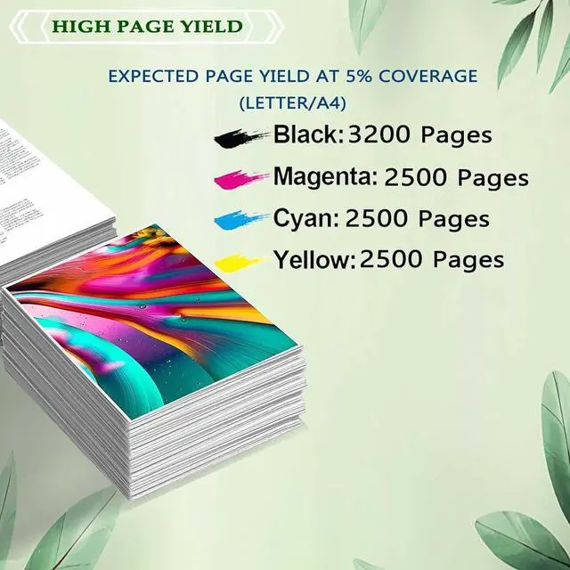 High-quality Toner Cartridge Provide High-Quality Printing. Black 3200 pages, color 2500 pages each (A4 paper 5% coverage rate)