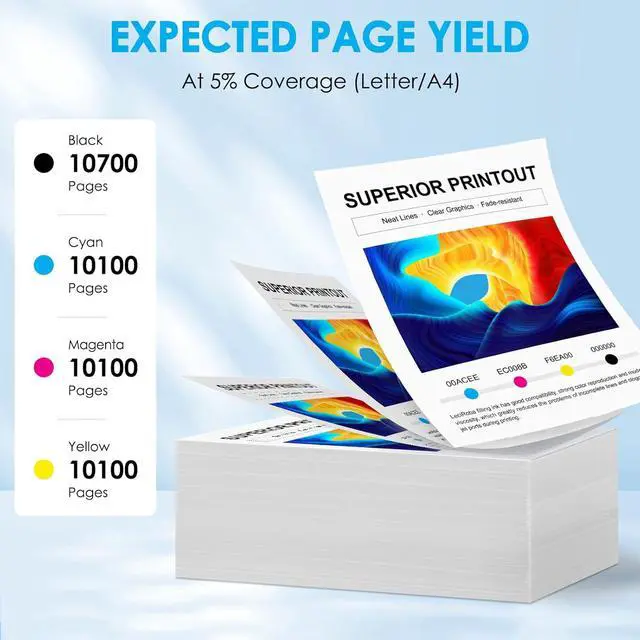 High Page Yield: Delivers approximately 10,700 pages per Black, 10,100 pages per Cyan Magenta Yellow (at 5% A4 coverage), ideal for high-volume printing.