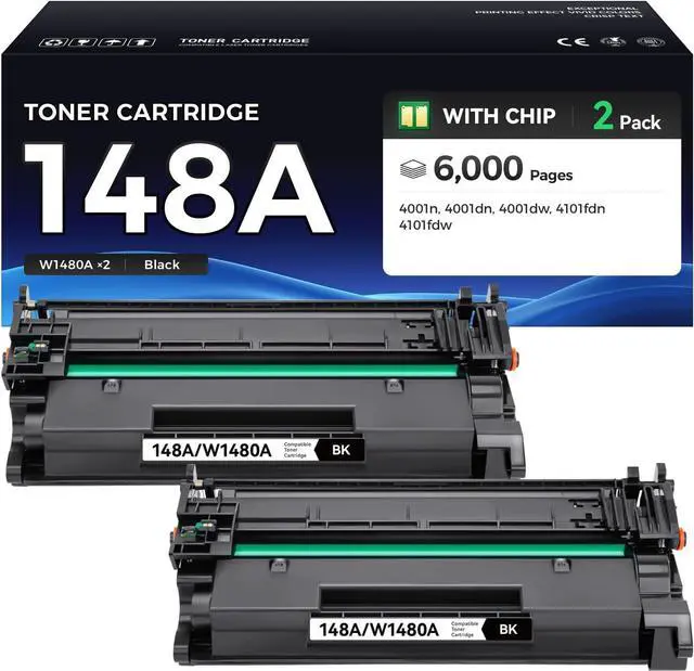 Package Contains: 2 New 148A black toner cartridges (Total Page Yield 6,000).