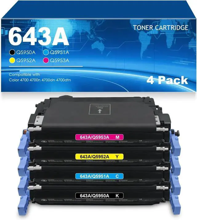 Package Contents:4 Pack 643A Toner Cartridges