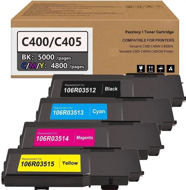 Package Contents: 4-Pack Compatible Xerox VersaLink C400/405 High Capacity Toner Cartridge Black Cyan Magenta Yellow (106R03512 106R03513 106R03514 106R03515 / Also Replace for 106R03524 106R03525 106R03526 106R03527)
