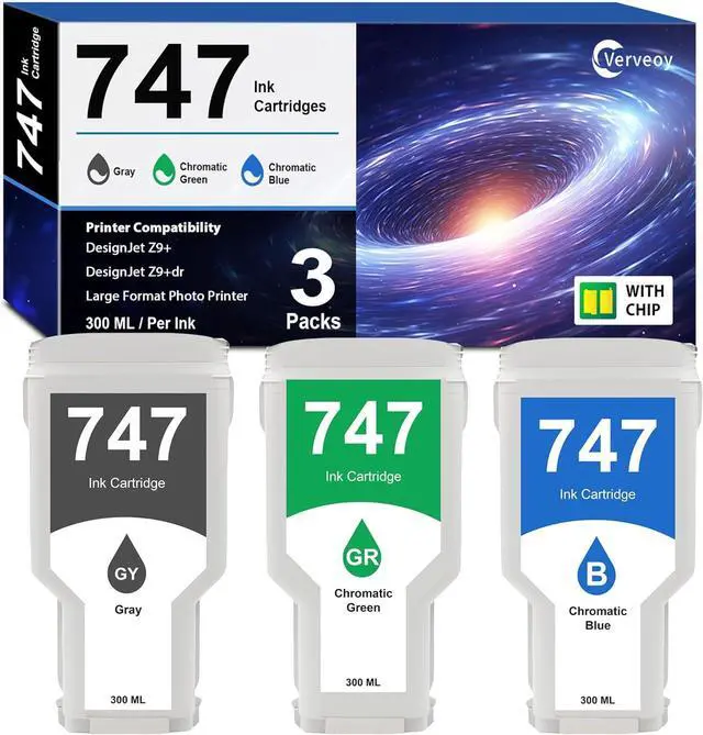 Premium Quality: Verveoy Replacement for hp 747 300 ml ink cartridge works with hp z9 ink to deliver high-quality prints on a wide range of media efficient, afordable and high-defination printing results