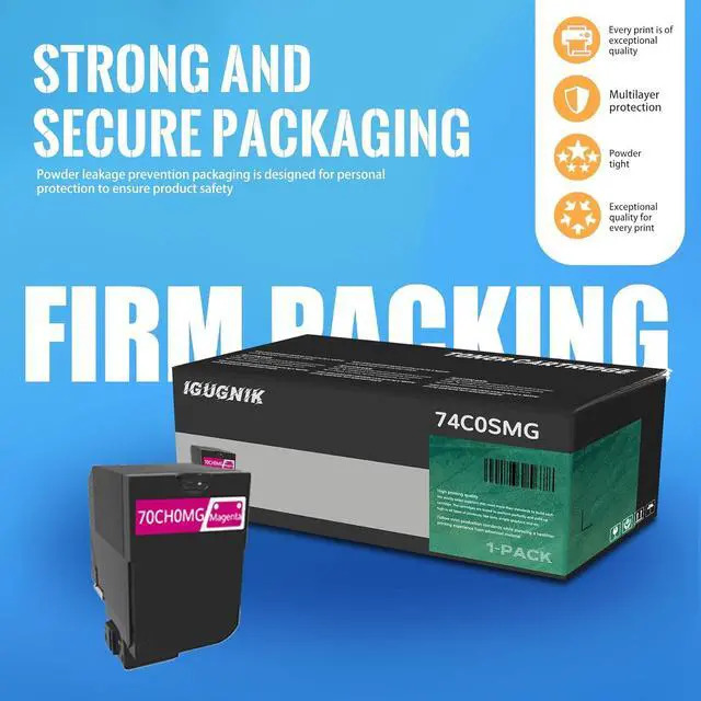 Quality Insurance: IGUGNIK replacements for Lexmark 74C0SMG Magenta Toner Cartridge are made in an ISO 9001, ISO 14001 certified facility to ensure they maintain the highest levels of quality and durability.