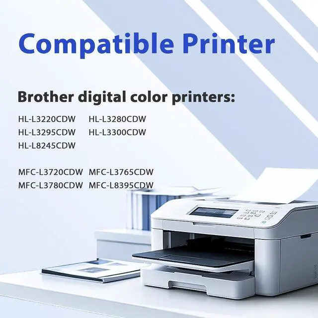 WIDE COMPATIBILITY: Compatible with Brother HL-L3220CDW, HL-L3280CDW, HL-L3295CDW, HL-L3300CDW, HL-L8245CDW, MFC-L3720CDW, MFC-L3765CDW, MFC-L3780CDW, and MFC-L8395CDW laser printers
