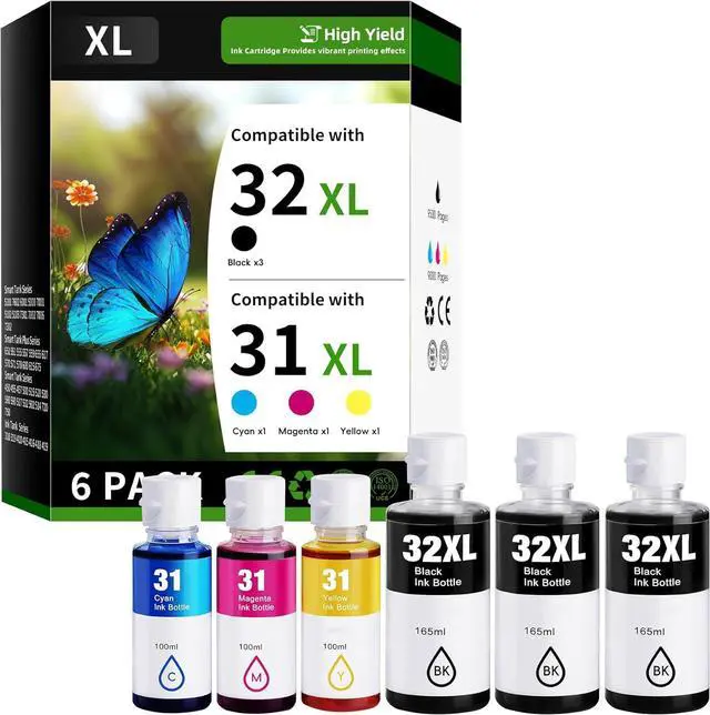 High Page Yield: Up to 9,500 pages per 32XL Black & 9,000 pages per 31 Color Ink Bottle (based on up to 5% coverage, A4 paper)