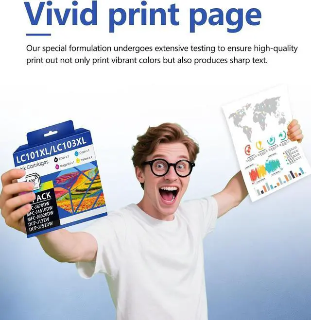 Smart Chip Compatibility: Equipped with the latest smart chip, it enables instant recognition of Brother DCP-J132W, DCP-J152W, DCP-J172W, DCP-J552DW, DCP-J752DW, DCP-J4110DW, MFC-J245, MFC-J285DW, MFC-J450DW, MFC-J470DW, MFC-J475DW, MFC-J650DW, MFC-J870DW, MFC-J875DW, MFC-J4310DW, MFC-J4410DW, MFC-J4510DW, MFC-J4610DW, MFC-J4710DW, MFC-J6520DW, MFC-J6720DW, MFC-J6920DW series printers. Plug and play without complex debugging