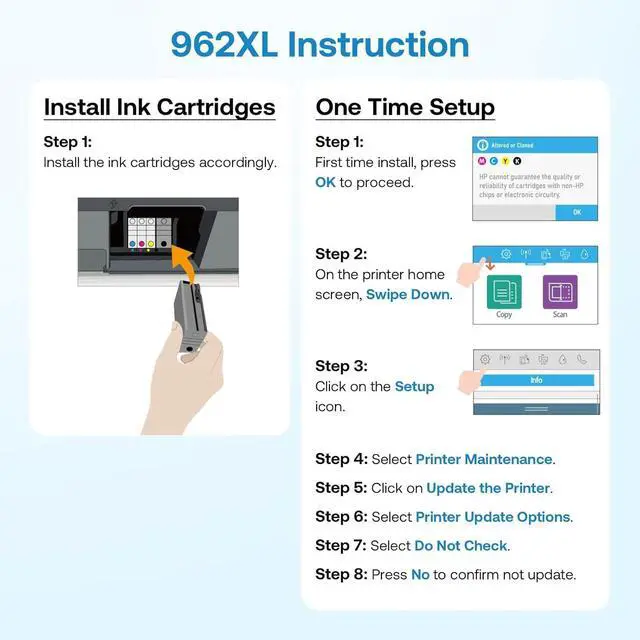 Warm Tip: Please check the compatible printer model of this ink cartridge for 962xl ink cartridges and make sure your printer model before placing an order