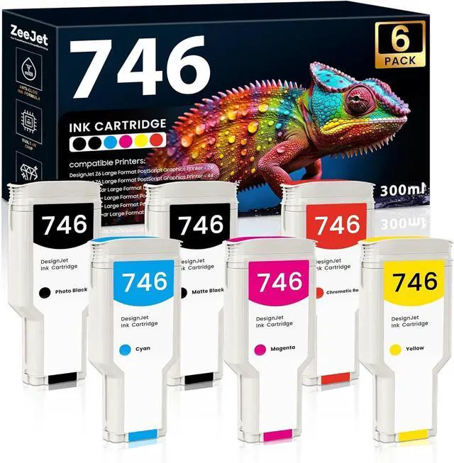Product Name: Zeejet 746 Ink Cartridges Replacement for HP Designjet 746 Ink Cartridges 300ml High-Capacity 6-Pack Set for HP DesignJet Z6 Z9 Z9+ Ink Cartridges