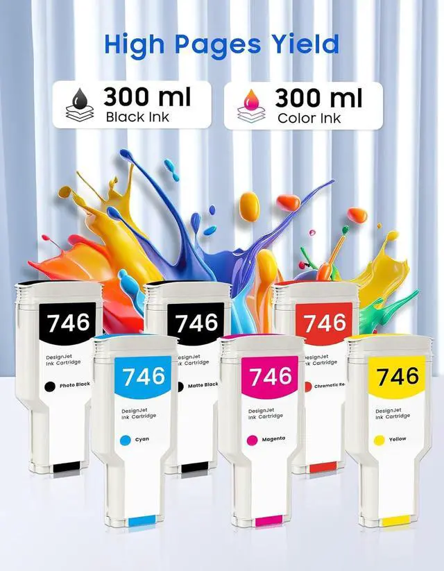 High Ink Volume: 300 ml per 746 Ink Cartridge Matte Black, Photo Black, Cyan, Magenta, Yellow, Chromatic Red