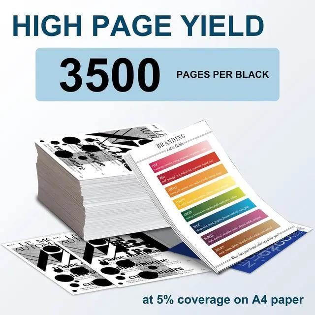 High Page Yield Up to 3,500 pages per Black at 5% coverage of A4 paper