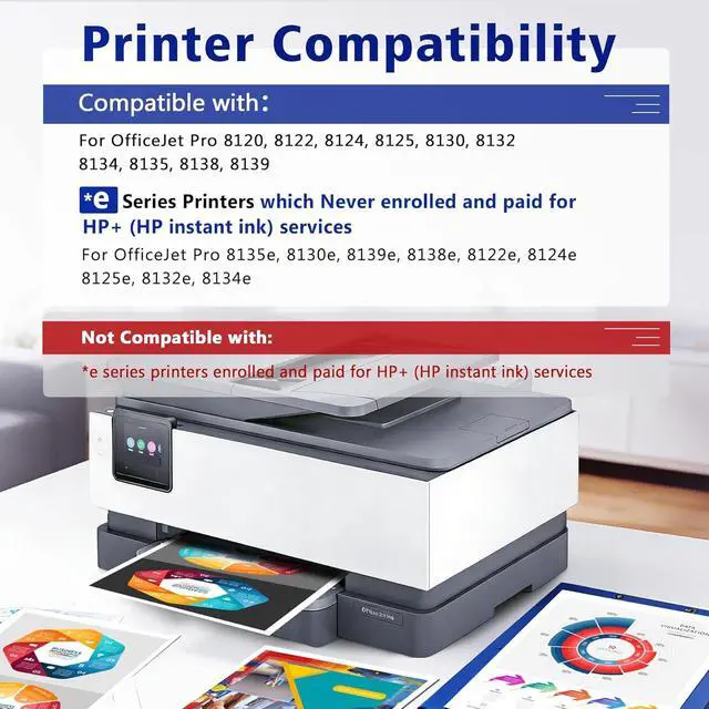 Wide Compatibility & HP+ Note: for HP 923 ink cartridges combo pack compatible with HP OfficeJet Pro 8120 8122 8124 8125 8130 8132 8134 8135 8138 8139 8135e 8130e 8139e 8138e 8122e 8124e 8125e 8132e 8134e Series Printer (for for e-series printers that have NEVER enrolled or paid for HP+ / HP Instant Ink)