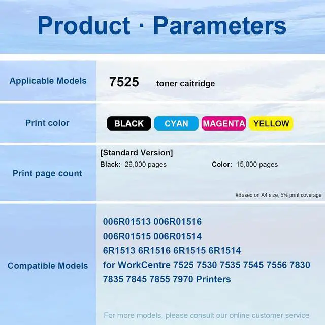 Important Reminder To ensure proper functionality, please verify your devices compatibility with our 006R01513 006R01516 006R01515 006R01514 toner cartridges before purchasing