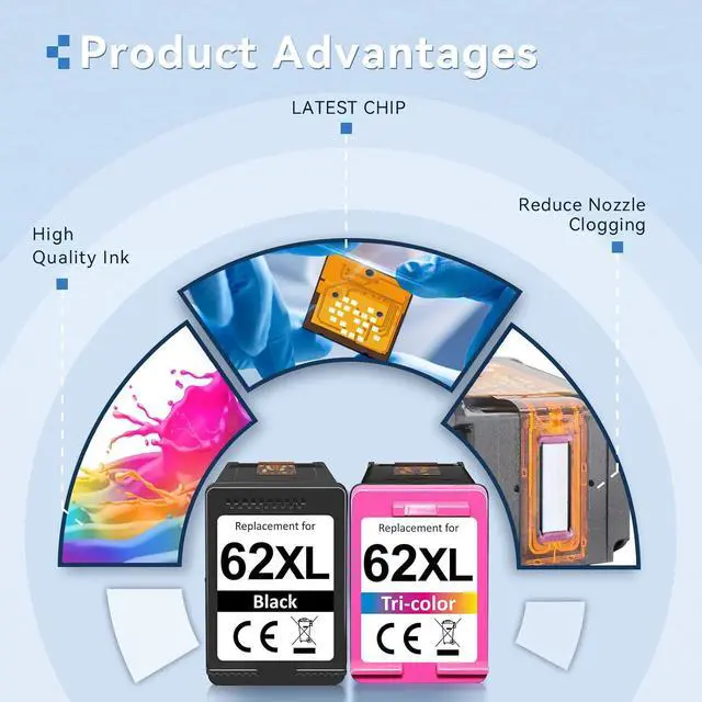 For HP 62 Ink Package Package Contents: high-yield 2 Pack 62xl ink cartridges black and color Compatible for hp 62xl ink cartridges black and color