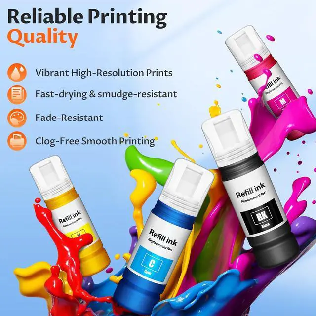 Compatible Printers: EPT522 Ink Refill Bottles Replacement for EP ET-2800, ET-4800, ET-2720, ET-2803, ET-2400, ET-4700, ET-4810, ET-2840 printers.