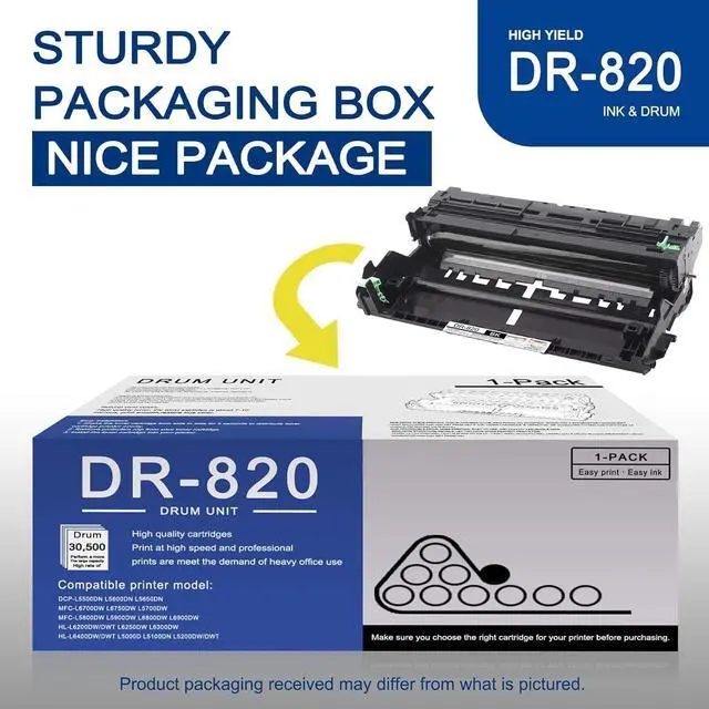 1 Pack DR820 Black Drum Unit replacement for Brother DR820 Drum Unit.