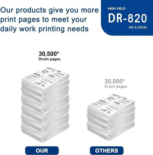 Page Yield: 30,500 pages per DR820 Black Drum Unit at 5% coverage (Letter/A4).