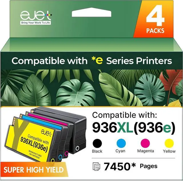 [Package Content]: 4 Pack ejet for HP 936e ink cartridges (1 × 936e black, 1 × 936e cyan, 1 × 936e magenta, 1 × 936e yellow ink cartridge)